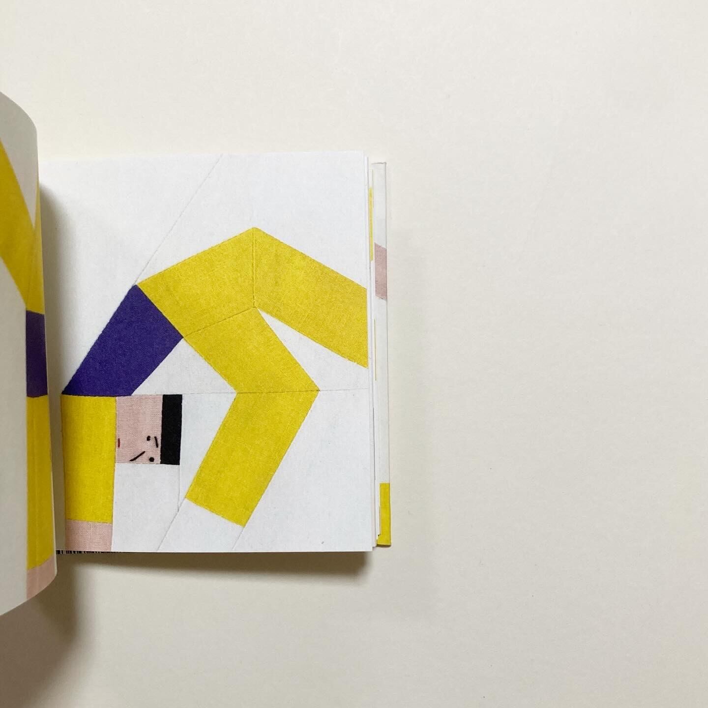 フランスのアーティストLouise-marie cumont の作品集。黄色と青の生地で縫われたキャラクターが、宙返りや様々なポーズをとりながらをくるくると動きます。文字のない、グラフィカルな絵本です。